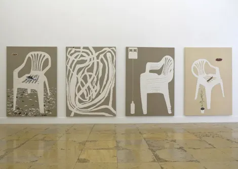 communiqué presse de l’exposition « CHAISES, COCHONS ET LABYRINTHES BOUFFIS » de Floris Dutoit à la galerie Henri Chartier, Lyon, 2023